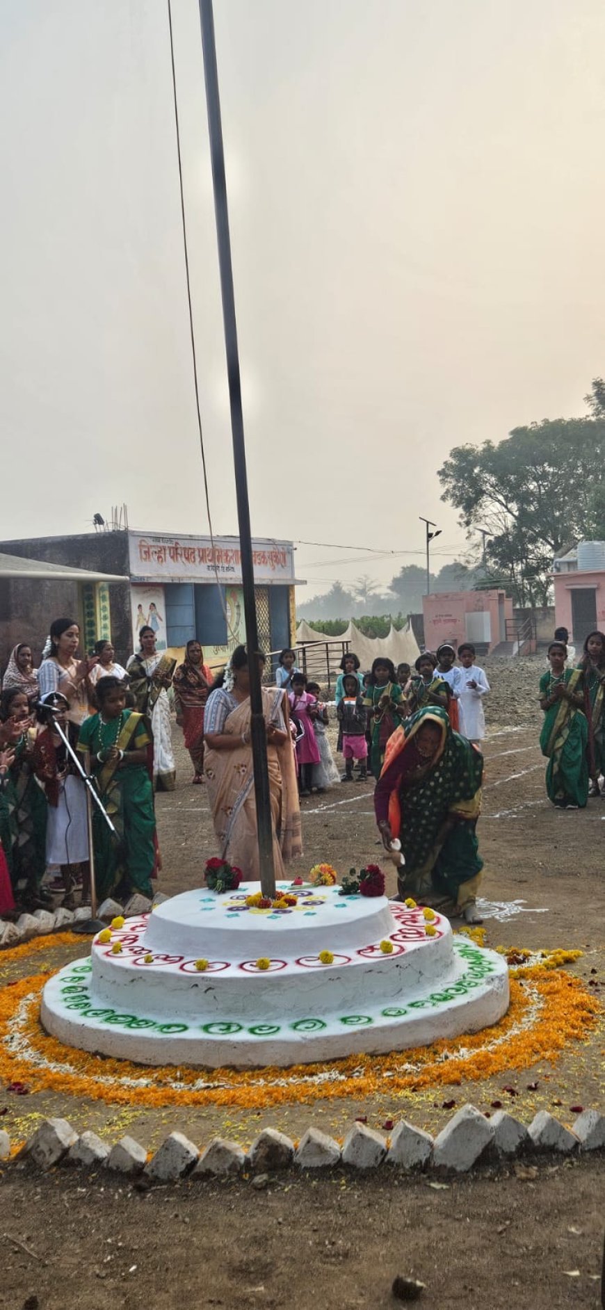 या कार्यक्रमास सरपंच रंजनाताई गुंबाडे, उपसरपंच मधुकर फुगट, ग्रामपंचायत सदस्य, गावातील पदाधिकारी, जेष्ठ नागरिक, महिला भगिनी, शिक्षकवर्ग, शाळेतील विद्यार्थी-विद्यार्थिनी तसेच ग्रामपंचायत अधिकारी मनोहर गांगुर्डे उपस्थित होते.